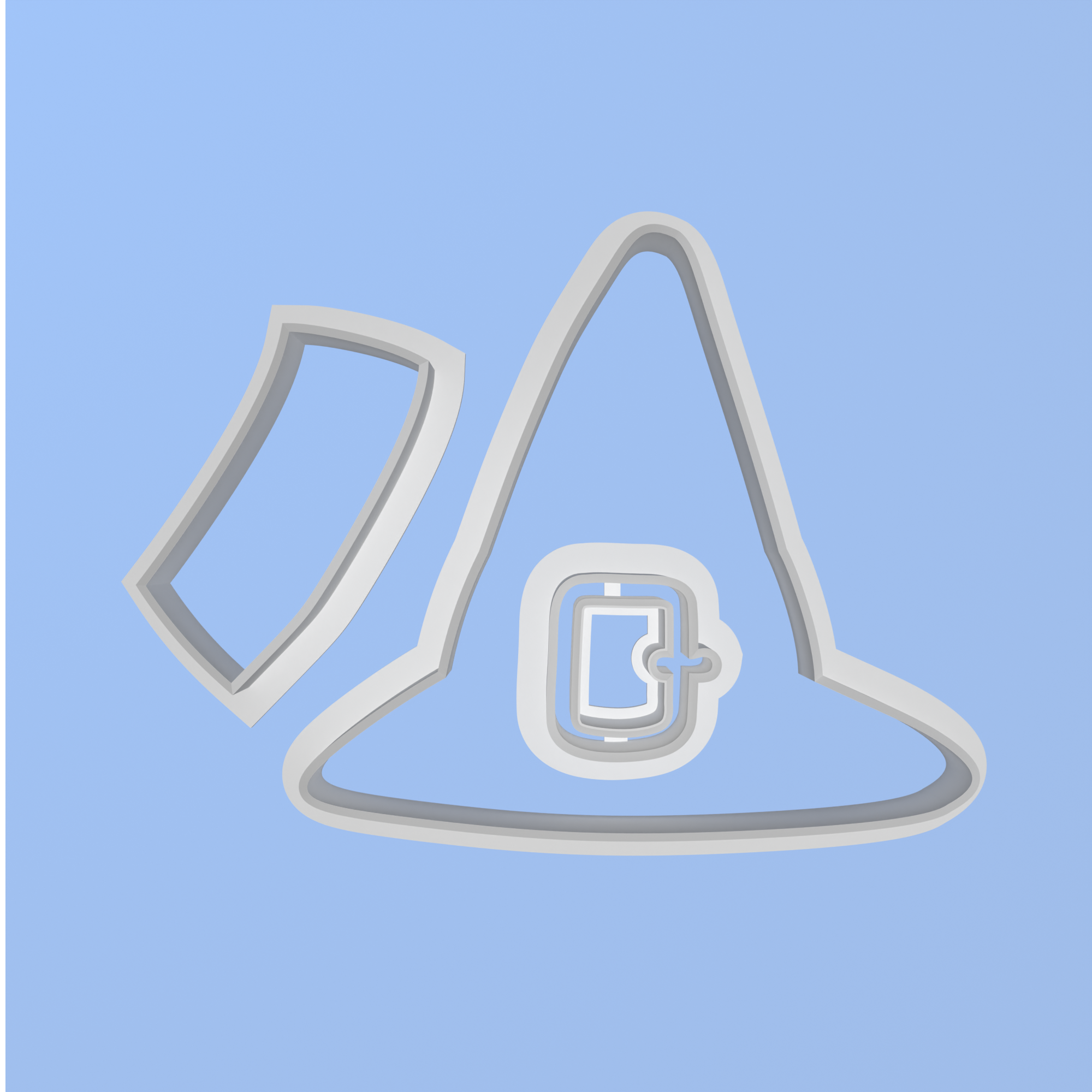 Kakform i form av en häxhatt – perfekt till Halloween! Innehåller en utskärare för själva kakan samt separata utskärare för spänne och band, så att du enkelt kan skapa detaljerade och dekorativa häxhattkakor.